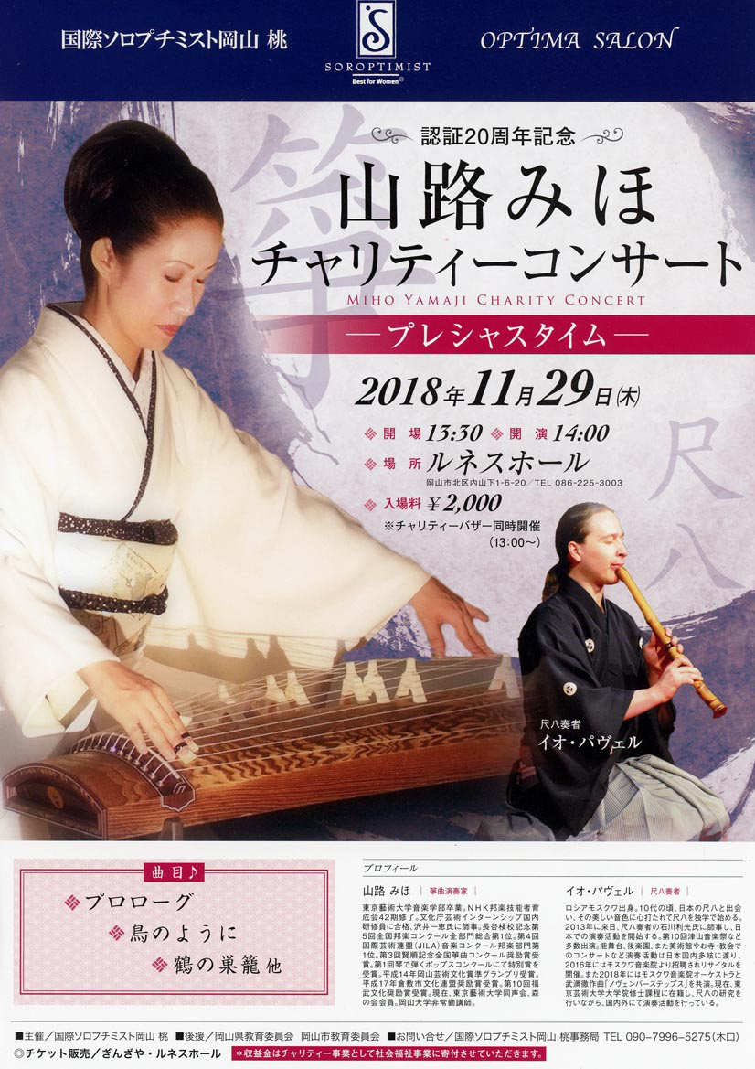 箏・尺八チャリティーコンサート 2018.11.29 岡山/ルネスホール |